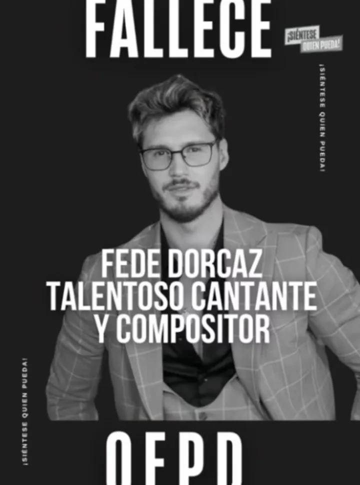 “Fallece QUEDP. Fede Dorcaz, talentoso y compositor”, reza la leyenda de letras blancas en la imagen.