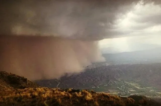 El viento apareció de pronto superando los 100 kilómetros por hora y afectó al Valle Central de Catamarca. Una nube impresionante de tierra quedó registrada en una imagen desde El Portezuelo.