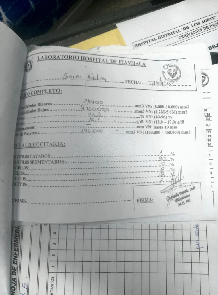 “Me negué y asumí la responsabilidad, porque sabía muy bien que mi madre estaba siendo mal diagnosticada”, expresó Olmedo. Posteriormente, otros médicos del mismo hospital cuestionaron la primera interpretación, pero lejos de ofrecer certezas, dejaron a la familia en la incertidumbre. Finalmente, la mujer pidió el alta voluntaria y llevó a su madre a realizar nuevos estudios en Tinogasta, donde los resultados fueron completamente distintos: en lugar de millones, el recuento de glóbulos blancos arrojó menos de diez mil, descartando cualquier neumonía o infección grave.