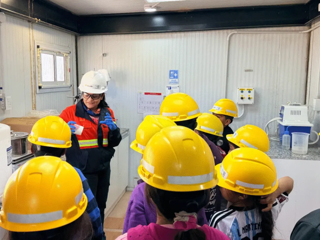 La visita incluyó un recorrido por la Planta de Procesos y el Laboratorio Químico, donde el equipo técnico de la empresa explicó a los estudiantes las tareas y procedimientos que allí se realizan para la obtención del carbonato de litio. La jornada culminó con un almuerzo compartido y la entrega de presentes para cada estudiante.