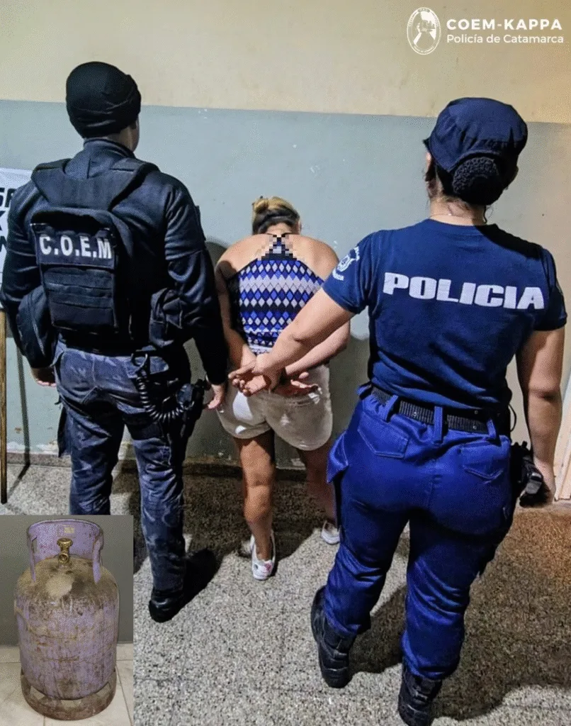 Motoristas policiales aprehendieron a una mujer y recuperaron una garrafa de gas sustraída. A la 01:50 de la madrugada de hoy, por solicitud del SAE-911, motoristas del COEM-Kappa llegaron hasta la avenida Dr. Deodoro Maza, entre calle Chubut y pasaje Mejor Hogar, donde habrían sorprendido infraganti a una persona del sexo femenino cuando salía del interior de una vivienda, propiedad de un hombre de 81 años de edad, con una (01) garrafa de gas y ésta al notar la presencia de la unidad móvil, dejó abandonado el elemento, que fue recuperado y quedó en calidad de secuestro, para luego intentar darse a la fuga siendo interceptada y aprehendida a los pocos metros.